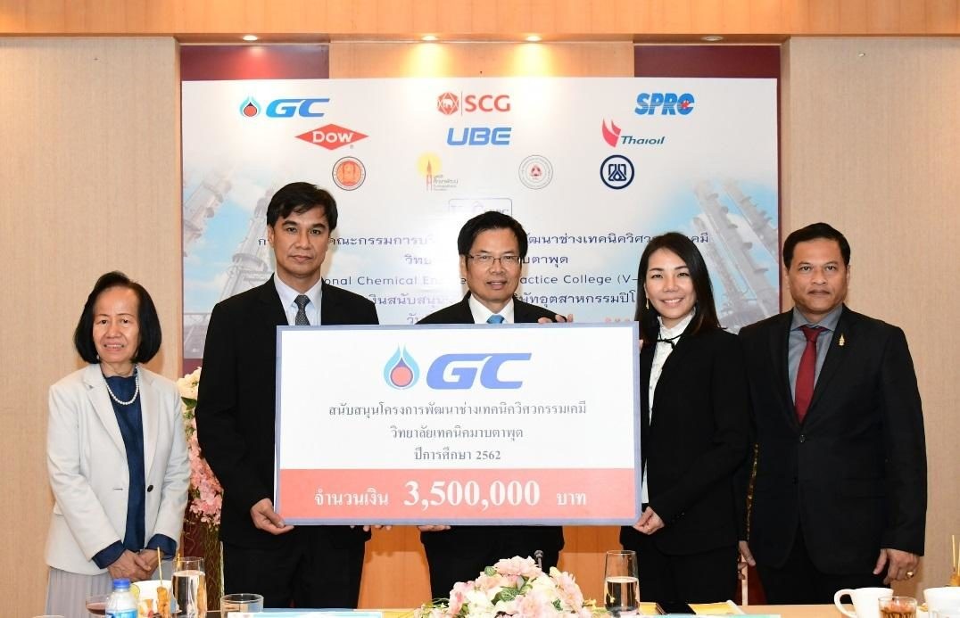 22 กุมภาพันธ์ 2562 กลุ่มบริษัทปิโตรเคมีในพื้นที่จังหวัดระยอง ได้มอบทุนสนับสนุนการศึกษาประจำปี 2562 แก่โครงการพัฒนาช่างเทคนิควิศวกรรมเคมี Vocational Chemical Engineering Practice College (V-ChEPC)  หรือ  วี-เชฟ วิทยาลัยเทคนิคมาบตาพุด จังหวัดระยอง เป็นจำนวนรวม 8.5 ล้านบาท ซึ่งกลุ่มอุตสาหกรรมปิโตรเคมีได้มีส่วนสนับสนุนโครงการดังกล่าวมาอย่างต่อเนื่องกว่า 12 ปี โครงการ V-ChEPC ประสบความสำเร็จอย่างมากในการพัฒนาและผลิตนักศึกษาอาชีวะสาขาปิโตรเคมีให้มีทักษะวิชาชีพ คุณธรรม จริยธรรม กระบวนการคิดและวิธีทำงานอย่างเป็นระบบ ร่วมไปถึงพัฒนาทักษะชีวิตเชื่อมโยงกับโลกการทำงาน ด้วยกระบวนการเรียนรู้และการเรียนการสอนเชิงสร้างสรรค์ และจัดเป็นการศึกษาระบบทวิภาคีที่ได้รับความร่วมมือจากภาครัฐและเอกชน โดยจะมีการวัดผลและประเมินผลร่วมกับสถานประกอบการจริง ซึ่งผู้สำเร็จการศึกษาจะมีงานรองรับ 100% ได้รับค่าตอบแทนสูงกว่าผู้สำเร็จการศึกษาในระดับประกาศนียบัตรวิชาชีพขั้นสูง (ปวส.) ในระดับเดียวกัน